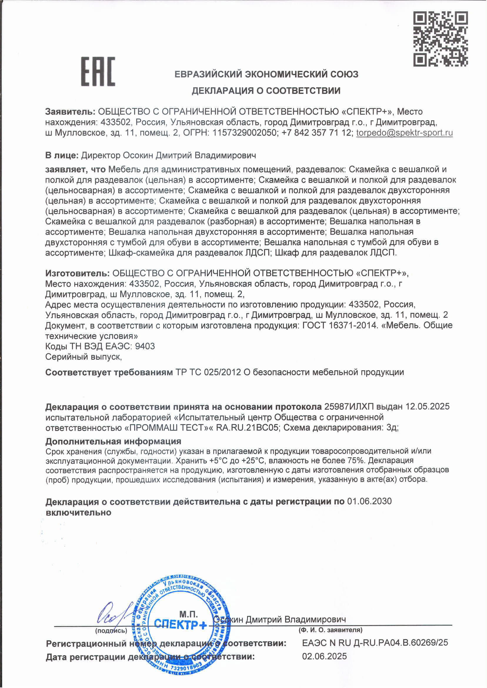 Сертификат соответствия (противопожарный сиденья Арсенал)